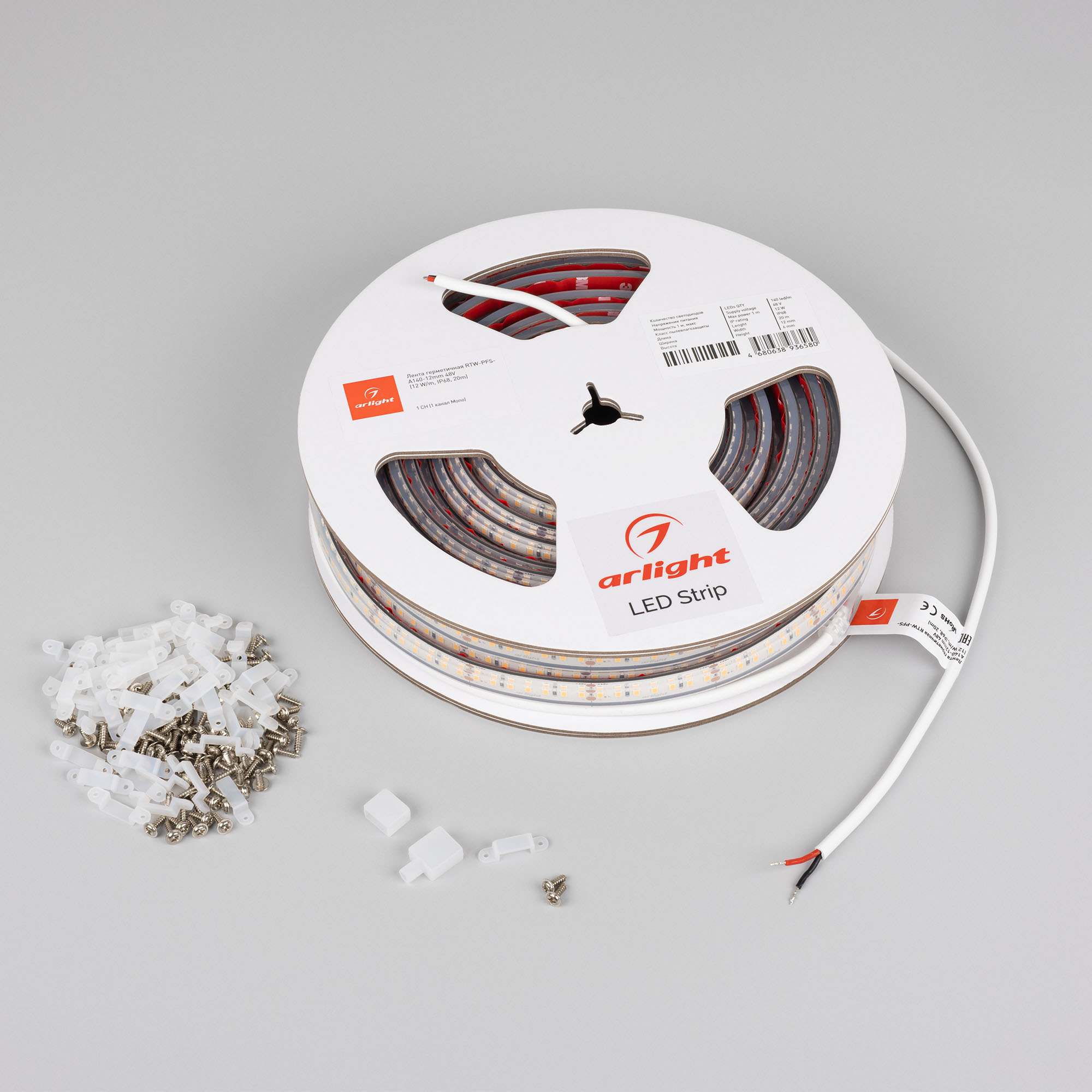 Светодиодная герметичная лента RTW серии A140 с подключением до 20 м с одной стороны. Степень защиты IP68, лента в силиконовой оболочке, устойчива к УФ излучению, широкий диапазон рабочих температур -40..60°C. Светодиоды SMD 2835, 140 шт/м, дневного цвета свечения (5000K). Предназначена для декоративной подсветки в помещениях и на улице. Имеет увеличенный кабель питания 1 м для удобства монтажа и установки. В комплекте силиконовая заглушка глухая - 1 шт, силиконовая заглушка под провод - 1 шт, силиконовые скобы - 60 шт.