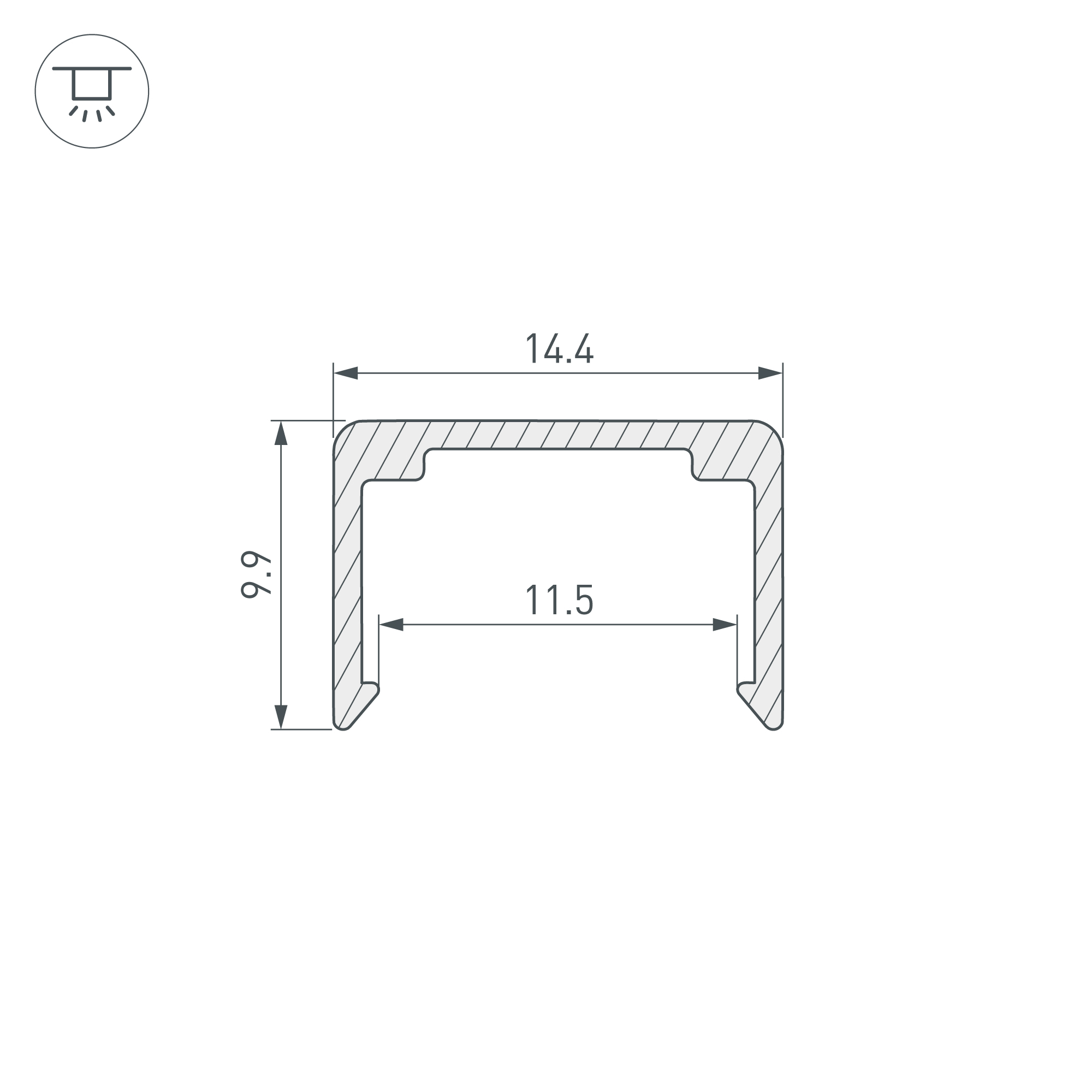 Профиль из анодированного алюминия для накладного монтажа силиконового профиля WPH-FLEX-1212 и создания прямых линий. Габаритные размеры профиля составляют 1000 мм в длину, 14,4 мм в ширину и 9,9 мм в высоту. Цена за 1 метр.