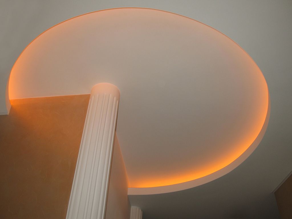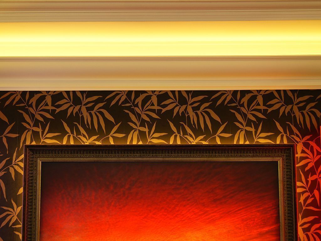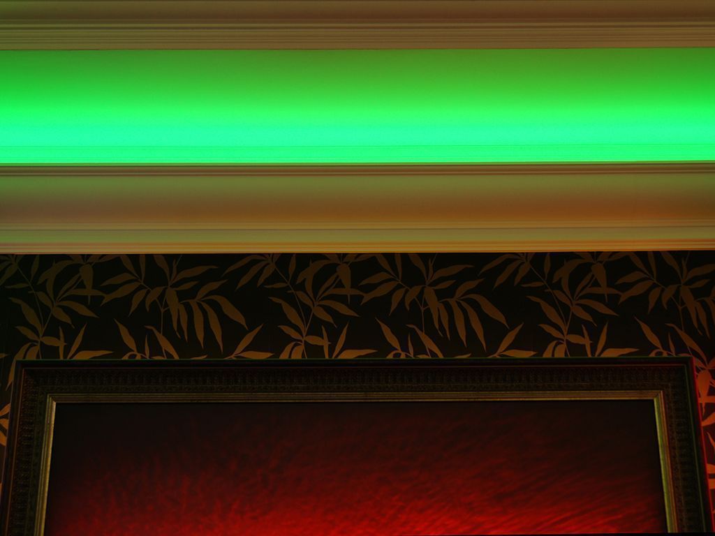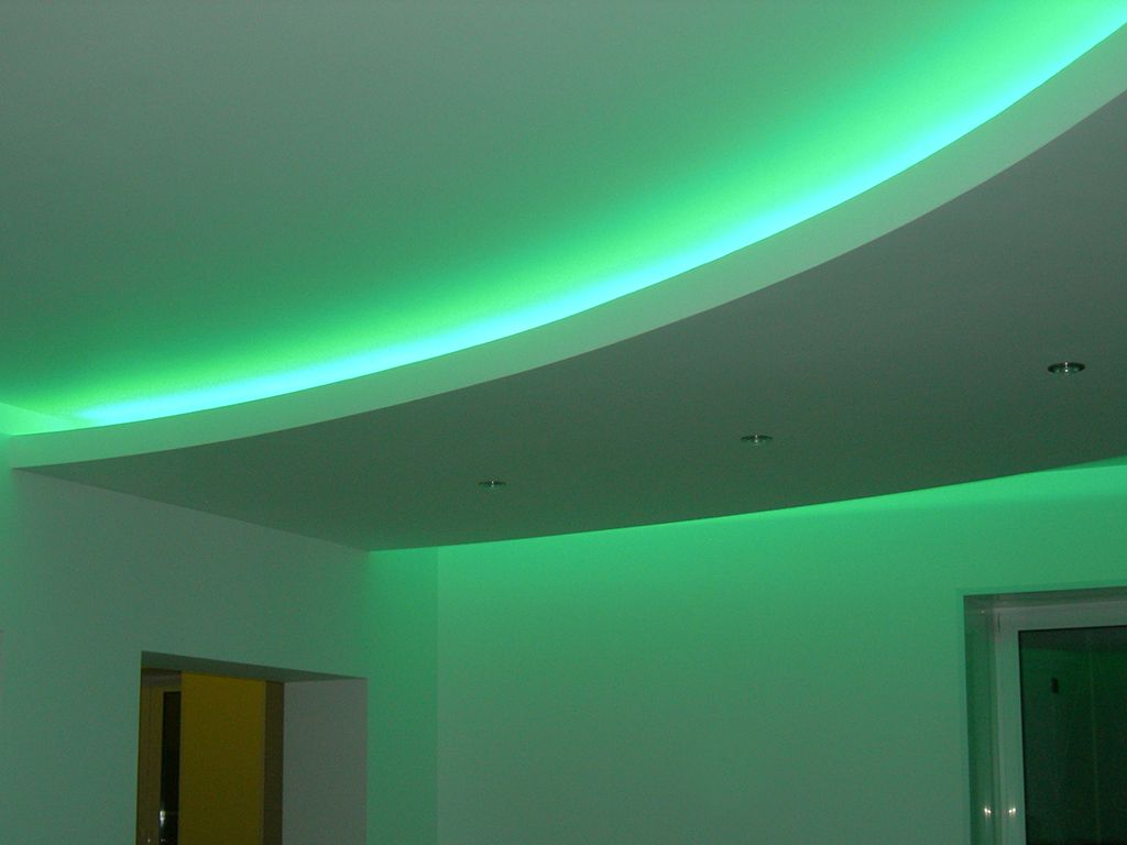 На фотографиях выше Вы можете увидеть примеры удачного применения мультицветной RGB светодиодной ленты arlight®. В данных примерах лента установлена в декоративных полиуретановых карнизах, потолочных карнизах из гипсокартона, многоуровневых потолках и потолочных нишах.