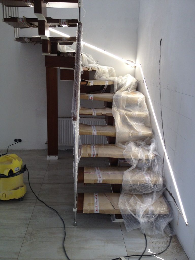 Светодиодная подсветка лестниц, выполняет сразу две функции - с одной стороны является декоративным элементом интерьера, с другой стороны обеспечивает безопасность передвижения в темное время. Вариантов расположения подсветки очень много. Это размещение на поверхности ступени светодиодной ленты в специальном алюминиевом профиле, расположение светодиодной ленты под ступенями, монтаж вдоль всей лестницы в стены или на перила. Для удобства и экономии электроэнергии можно также применить различные датчики управления освещением - микроволновые, инфракрасные и фотореле. В данном проекте подсветка лестниц выполнена с применением светодиодного оборудования торговой марки arlight®.