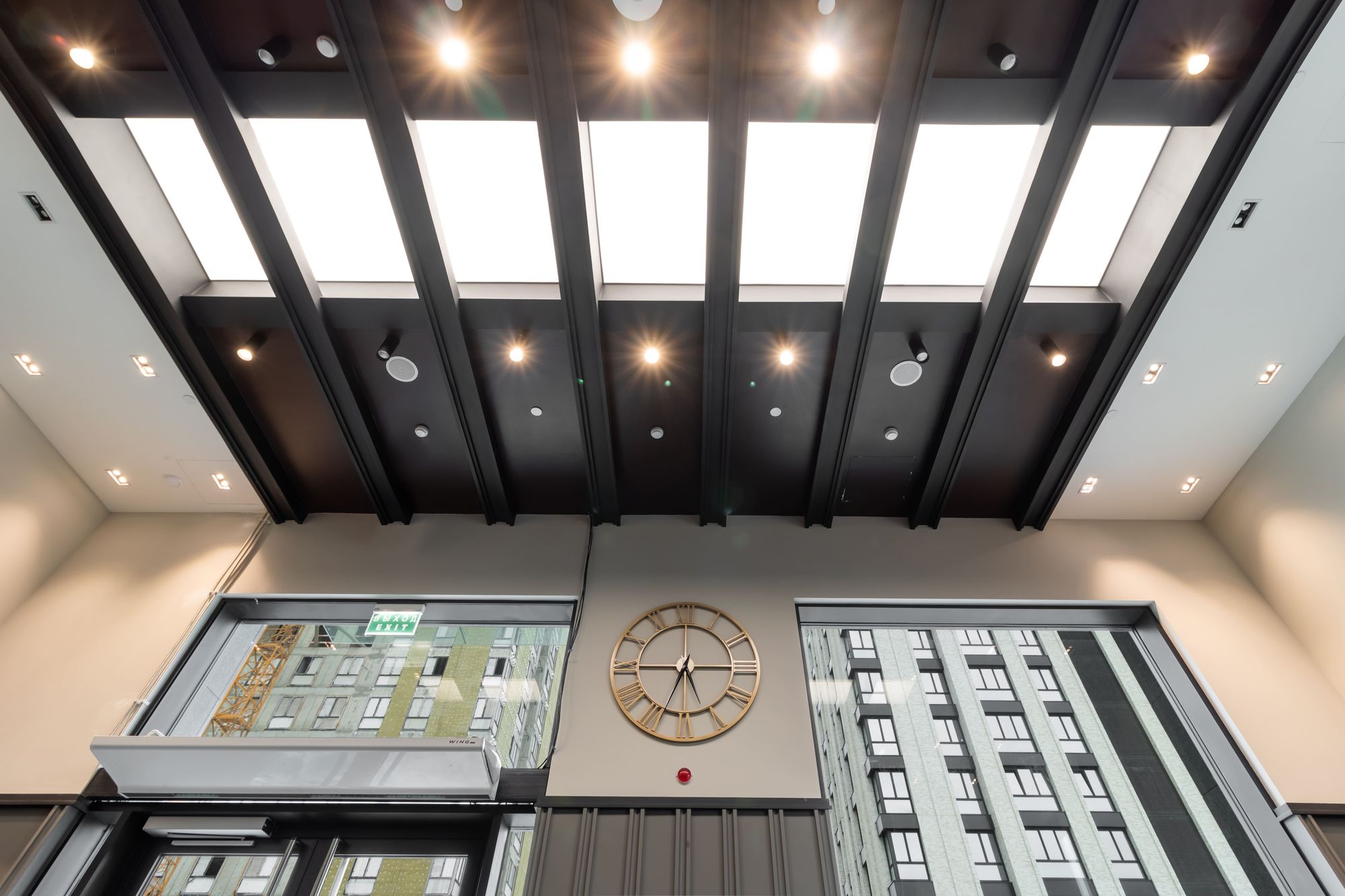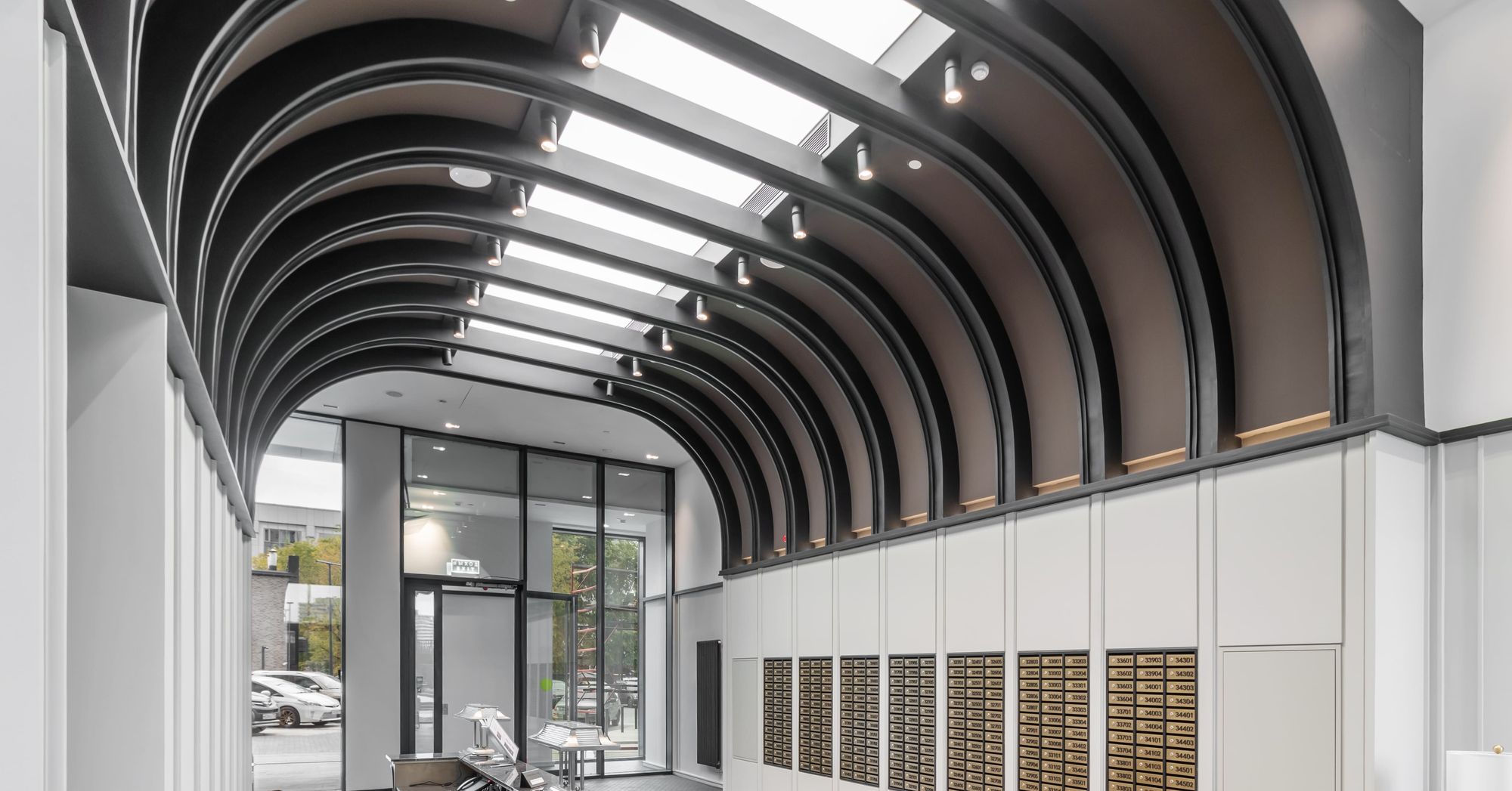 Основное освещение в лобби и коридорах создано за счет встраиваемых карданных светильников KARDAN. Наподобие свету в кино, данные светильники сделают световой акцент там, где он нужен: благодаря узкому углу излучения (38°) и одному или двум поворотным модулям, отклоняющимся на 45°.